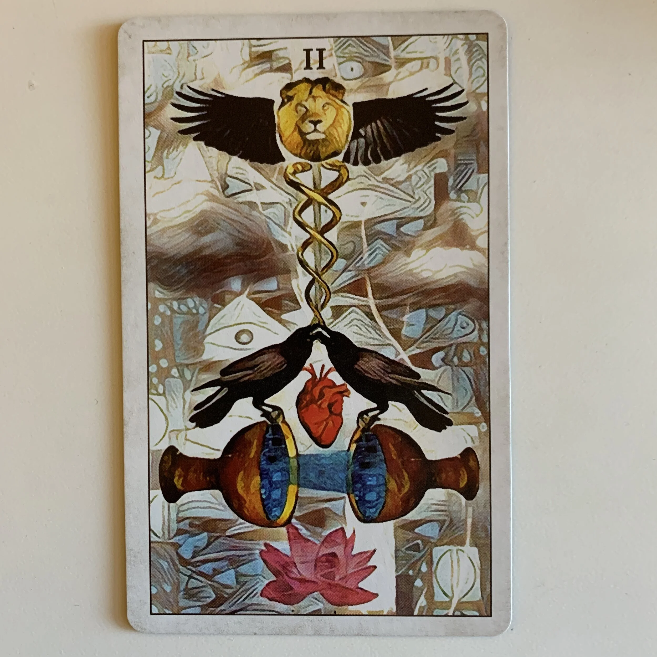 /2 of Cups: When two rivers meet, where does one end and the other begin? Your interior selves don’t have to be identical or fully merged to give your lion wings. Your ancestors live in the mirror whether or not you can see them peering back, spun into your marrow and blossoming ventricles. How can you invite them out of the background and into the fore? What patterns do they know and form, what codes do they hold? Something died and something survived to make each of us. The way the lotus grows from the mud we all emerged from some muck, some inglorious start, and also the stars.