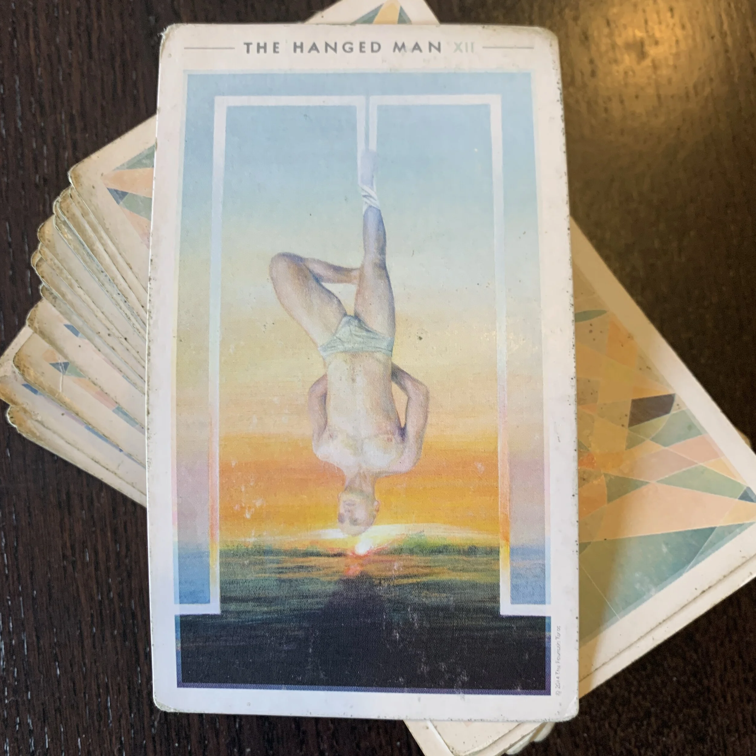 /The Hanged Man: How the hell did you end up here? Is this suspension punishment or bliss? The thing from which you are suspended is everything. Or tied to everything. Is your becoming a widening or a narrowing to a very fine point? Is the world upside down or is it you? The way it can feel like you’re moving when you look out the window of a still vehicle and watch traincars pass, our hearts are always way out ahead of us. Sometimes we have to go backward to catch up. Is the sun rising, setting, or waiting for you to catch fire? The only thing keeping you here is you. Hang on. Let go. Hang on.